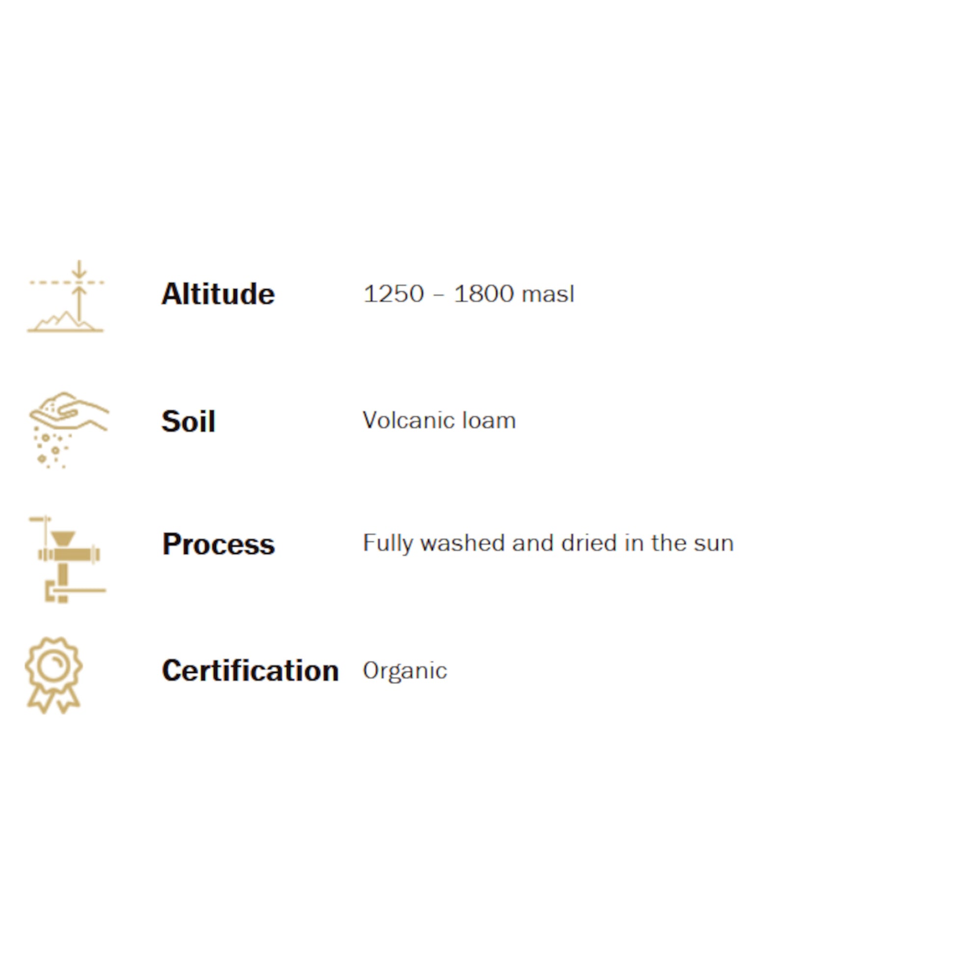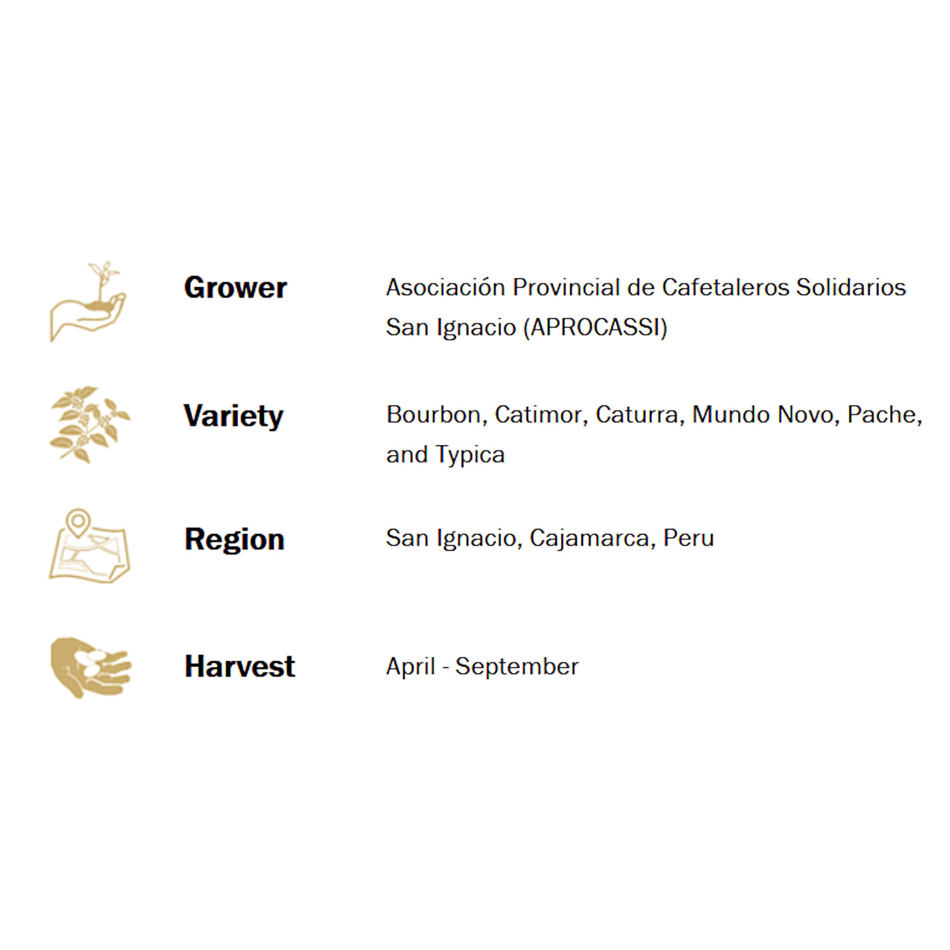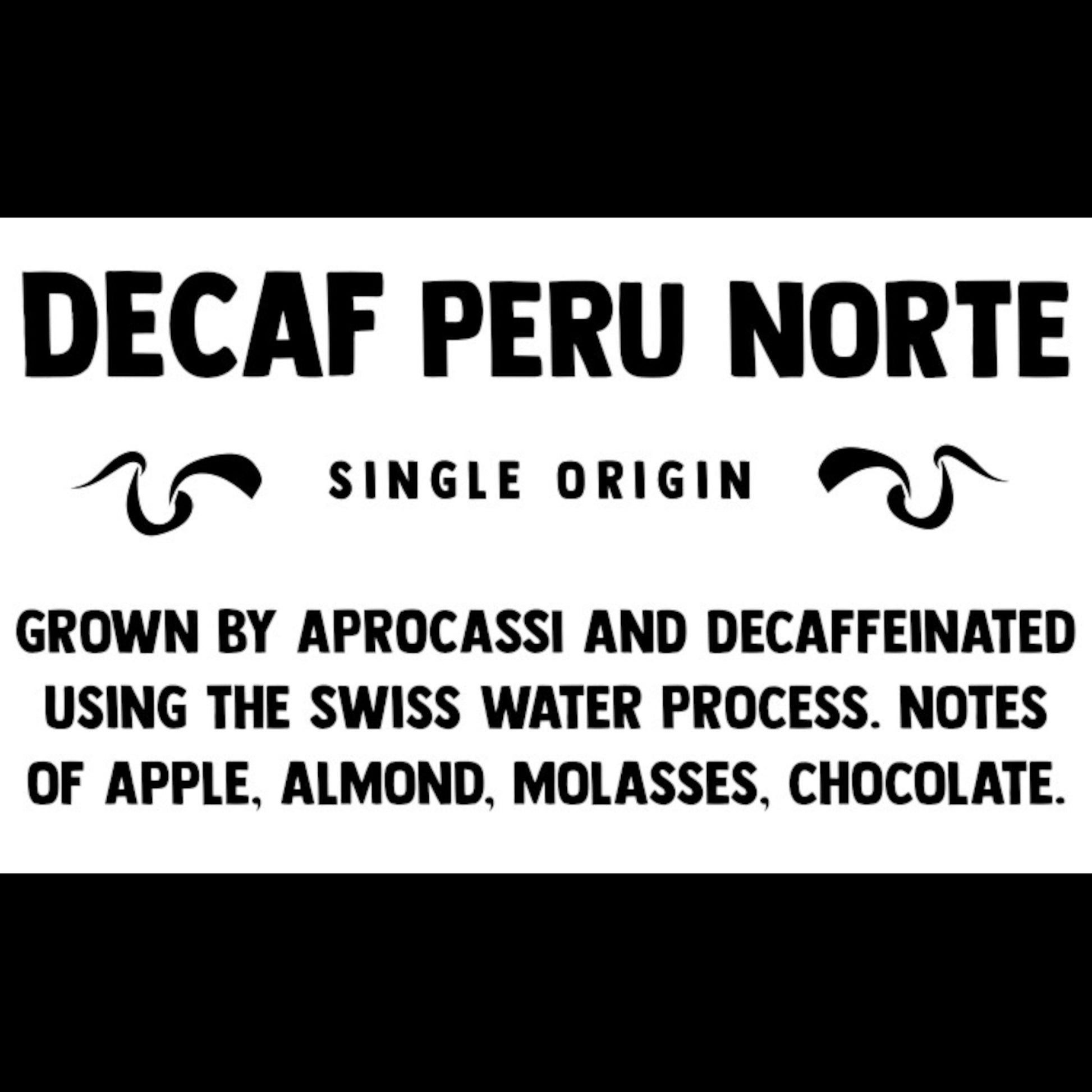 Grown by producers from San Ignacio in Cajamarca, Peru. During the water process, the green coffee is pre-soaked in water to expand the beans for caffeine extraction. The hydrated green coffee is then introduced to a unique solution of concentrated coffee solubles that draw out the caffeine while minimizing the loss of flavor compounds. Once the caffeine has been removed the green coffee is re-dried and re-bagged for transport, and the extract solution is filtered of its caffeine and recycled to be used again.